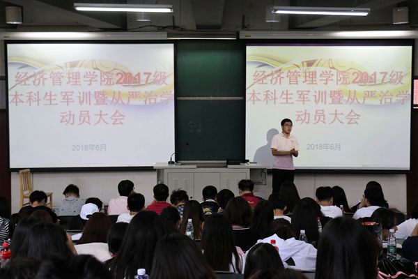 2018年6月28日,w88win中文手机版在教B103组织召开了2017级本科生军训暨从严治学动员大会,2017级辅导员邬津老师主持并动员。